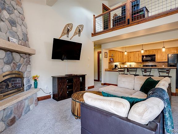 Lives like a 2-Bedroom! This bright and airy top floor condo boasts an open concept floor plan with vaulted ceilings in a generous 1090 sq ft. If you are looking for short-term rental or for personal use, you will love #3036. Truly turn-key ready with all furnishings included, you can move right in, or place it in the rental pool immediately. The attractive main level has a fully furnished kitchen with a breakfast bar seating four, dining table, spacious living room with plush sofa and cozy fireplace, large bedroom with king bed, full bathroom, and separate laundry room with w/d. As a bonus, new stainless kitchen appliances and new carpeting have been installed. Step out onto your private deck to relax, to enjoy the fresh air and view of Emerald Mountain, BBQ, or to access an additional storage closet. The upstairs loft is essentially a second bedroom with a private bath and includes a huge, finished bonus room, which can be used for storing all your Steamboat gear including bikes, as another sleeping space, or as your Owner’s closet. The Pines at Ore House also offers outdoor hot tubs for your use, and owners can have dogs or cats. This condo provides all the comforts of home in a convenient location walking distance to two grocery stores, restaurants, free city bus, and walking/biking trails along the Yampa River. A perfect place for a perfect stay in Steamboat.