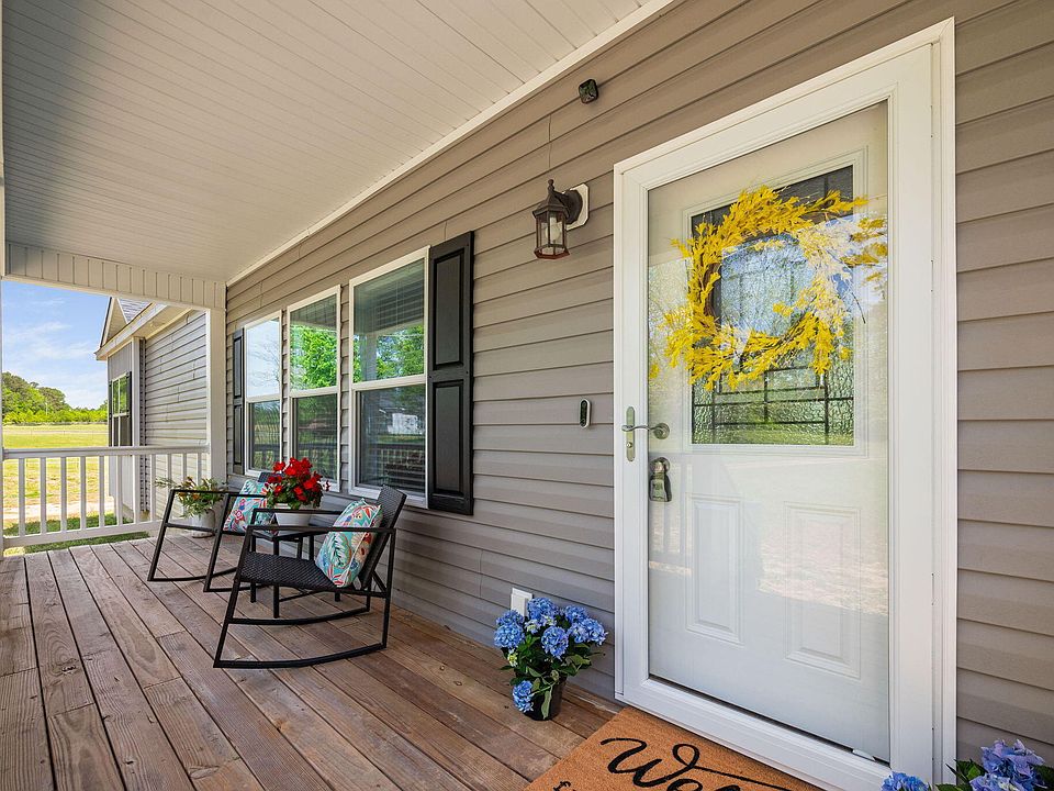 You're not going to want to miss this one! Stunning 4BR modular ranch home with rocking chair front porch, just 3 years old! Beautiful open floorplan with AMAZING gourmet kitchen, huge island with room for seating for 4, soft close drawers and cabinets, and upgraded fixtures. Dining area features built in cabinetry with glass doors and counter area. Everything is so light, bright, and open in this home, sunny day or not! Primary bath is spacious and features plenty of cabinets and gorgeous walk in shower. Beautiful low maintenance LVP floors throughout common areas and upgraded carpet in bedrooms. Speaking of the bedrooms, they are HUGE, and there is even a built-in desk area in the hallway! This home is the best value for the money in the area! Put your own touches into the landscaping and add instant equity.