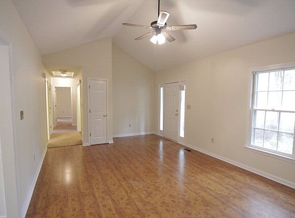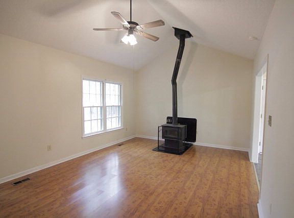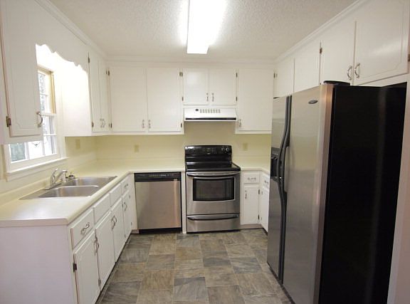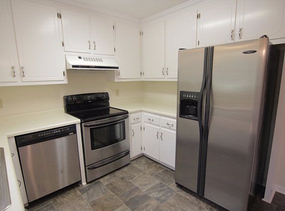 Ready to move in. Hardwood look laminate flooring in family room & 2 of the bedrooms. New carpet. New tile pattern vinyl flooring in kitchen & both baths. New interior paint throughout including all walls, trim, doors, cabinets, etc. Nice size eat in kitchen. All kitchen appliances stay with the home including fridge, range, microwave and dishwasher. Fresh exterior paint. Fenced in rear. Very low maintenance wooded lot. Central heat & air. Garage was enclosed & partially finished & is great for a large bonus room or rec room & is cooled well with a window air conditioning unit. Completely finishing this room would only require floor covering over the concrete floor & drywall or paneling on a couple walls.