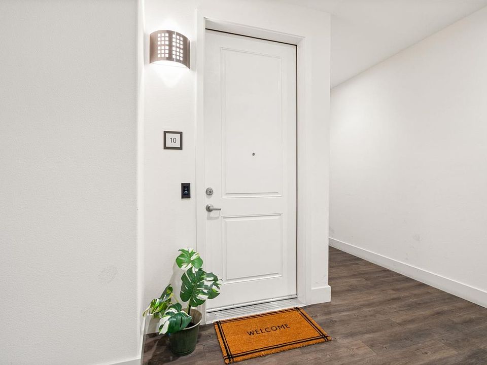 Step outside onto the charming balcony, which opens to a serene green areaa perfect spot to enjoy your morning coffee or unwind after a long day. Practical features like a dedicated laundry area add convenience to your daily routine, while stylish and durable flooring throughout the home enhances its appeal and functionality.