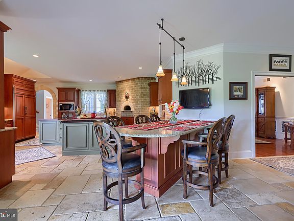 Located between the historic town of Conestoga and the Conestoga River, this majestic property lies on a captivating 18.3 acre horse farm. This European Style country home with 5 bedrooms and 5 bathrooms, this home has unique craftsmanship at every turn and is loaded with custom features that are sure to amaze. Jerusalem limestone flooring throughout the home, a walk out basement with 10 foot ceilings and a salt water in-ground Pool are just some of the luxurious amenities it offers. As you enter through a large solid mahogany front door you will be drawn into the large custom kitchen that is just one of the many highlights of this home. Custom cabinets surround an Iroka African Wood Center Island with Bronze Cast sink and counter, a built-in 4 foot "Woodstone" Gas/Wood Fired Stone Hearth Pizza Oven, Meile built in warming drawer and Wolf Range with 2 ovens. A custom pocket door leads to the formal dining room, which has cherry flooring and large windows for natural light. An open floor plan leads from the kitchen into the Great Room featuring a stone floor-to-ceiling wood burning Rumsford Fireplace and Jerusalem limestone floor. A mudroom, pantry and large guest bed room compete the main level. Your pets will be sure to enjoy the mudroom's side entrance with Dutch door and unique Bass Puppy Paw Door Bell. The first floor master suite comes complete with gas fireplace and solid wood French Doors. In the master suite bath, take note of the state of the art computer-controlled shower with his and hers multi head shower heads, wall jet and rain head. As well as an Air Jet Whirlpool Tub with heated back rests, private toilet area, and private screened-in porch. The property comes equipped with a dog kennel in the garage with automatic waters, doggie doors, heated and air conditioned and 5 kennel run inside and outside. Plus, an attached garage with cedar doors, front and rear patio area finished with stamped concrete and breathtaking landscape in every direction. Follow the split rail fencing and multiple paddocks to the self-sufficient horse facilities. The barn is equipped with 6-8 stalls, electricity, hot and cold water and hay storage. Attached to the barn is a 1-car garage and greenhouse. This barn has everything a horse enthusiast could ever want and need. The pastures can be lit at night and the outdoor sand riding arena is ready for training.