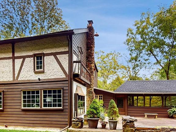 Welcome to the former Cat & Fiddle Inn: A one-of-a-kind property with over 600 feet of water frontage along the historic Delaware canal and 6 acres spanning scenic River Road. Remnants of an old waterwheel highlight the backyard oasis which is framed by extensive stone piled walls and walking trails leading to an original stone fireplace used by "canallers" in the 1800's. When watered, the canal provides a million-dollar water feature that will serenade you with its waters rushing down into the waterwheel's spillway. Patios, decking, and special garden rooms accentate outdoor living. The Elizabethan, half-timber style home, and property evoke all the charm of the English countryside. The Inn, operated between the 1930s through the 1950s, boasted such guests as Doris Day (guest books, original signs, and memorabilia adorn the great room). The sprawling, spacious property is ideal for entertaining and provides ample room for guest parking. Every room in the home is truly unique: the current owners have retained original features of the Inn including its whimsical stone fireplace, rustic living/dining room featuring post and beams, an "All-nighter" log burner, and tremendous screened porch to take in all the sights including winter views of the Delaware River. The refreshed kitchen is replete with the Inn's original dumbwaiter and the great room includes original built ins and reclaimed phone booth. The second floor offers 5 bedrooms (one is currently outfitted as a wardrobe) along with a second large screened in porch. The unfinished lower level (originating in 1885 as a bank barn), features windows and doors leading directly out onto the backyard. This level provides almost 2,000 additional square feet and is currently used as a shop space and storage. It also includes the Inn's former men's and women's restrooms and shower (not currently functional). Enjoy walking and biking along the canal towpath, tubing and kayaking on the Delaware River, and bird and wildlife watching in your own yard! Very low taxes and exceptional offering price for this one-of-a -kind property and location!