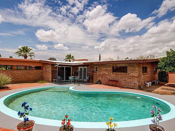 This stunning corner lot home in central Tucson is the one for you! Vintage and well kept! Vaulted ceilings with exposed beams throughout! Thousands spent on recent upgrades and maintenance since previous listing, home is on top notch shape. Saltillo tile in the great room is accompanied by a cozy fireplace. Eat in kitchen has breakfast bar, tiled countertops, and white appliances! Large master suite has tile flooring, ceiling fan, and private exit to backyard. 3/4 bathroom with extended single sink vanity. Upgraded hall bath, new master cool unit and AC unit, new fence, new cool decking. See attached list of items!! Beautiful oversized backyard has covered patio with lush green grass, and a sparkling blue pool! This home won't last long, so come see it now!