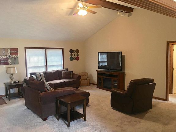 Spring is in the air and there is no place to call home like charming Tanyard Springs! Welcome home to this beautiful 3 bedroom, 2 full bath split ranch. Highlighting a gorgeous living room with vaulted ceilings, and natural wood beams/ trim throughout. The oversized eat-in kitchen offers beautiful wood cabinetry and newly tiled floor. Boasting a spacious master suite with two roomy walk-in closets, and a large master bathroom with his and her sinks. Step onto the roomy deck overlooking the huge back yard, offering the perfect spot to enjoy the budding spring weather! Equipped with a two car attached garage; newer roof, water heater and HVAC, all under a year old. Conveniently located close to shopping and expressways. This home won't last long! Call today to schedule your private showing!