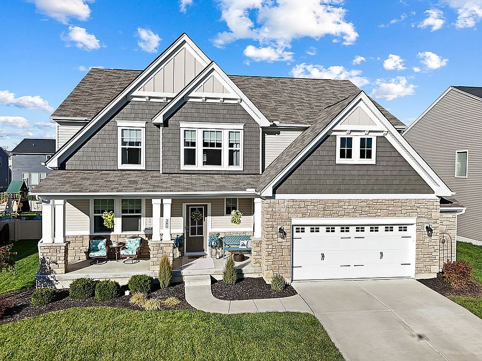 Coming Soon Listing, no showings until November 15, 2024. Call Dawn Hail with Plum Tree Realty at 513-600-8350 with questions. Discover this stunning 2019-built Craftsman-style home by Drees Homes featuring the coveted Alden plan. With 4 spacious bedrooms, 2.5 baths, and 3,138 sqft of above-grade living space, this home combines elegance and functionality. The inviting 2-story family room offers a cozy gas fireplace, perfect for gatherings. The chef-inspired kitchen boasts wood cabinets, granite countertops, a stylish backsplash, gas cooktop, double ovens, large island with seating, under-cabinet lighting, and a pantry. The luxurious primary suite is a true retreat, with a vast walk-in closet and a large bath showcasing dual sinks, a separate shower, and a relaxing soaking tub. Upstairs, enjoy the convenience of a second-floor laundry room and a separate primary bedroom layout. The bonus game/movie room adds extra space for entertainment. Outside, an aluminum-fenced yard provides space for outdoor activities. This beautiful, functional home checks all the boxes for comfort, style, and convenience! HGTV Perfect