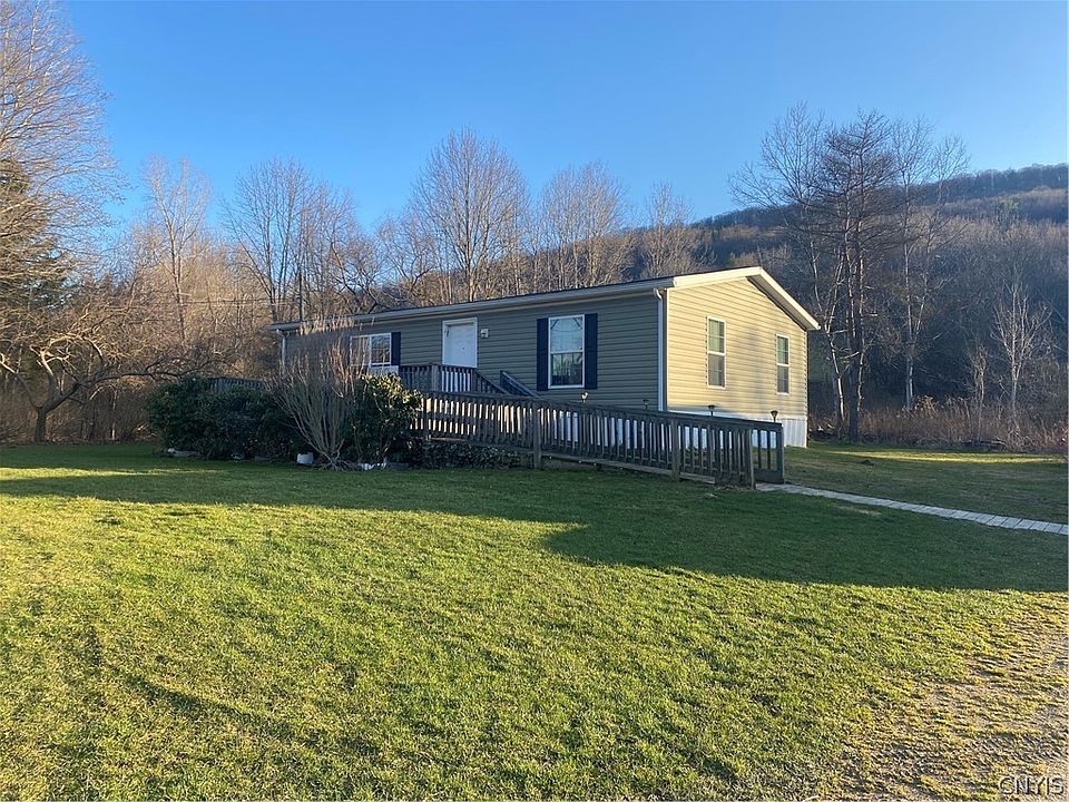 Cozy 2 bedroom, 1 bath doublewide on just over half an acre located in Dryden, NY. Handicap accessible, no step shower, 2 car garage and shed. The property currently has a spring fed water system that is grandfathered in, so the new owner will have to drill a well. Call today to set up a showing!