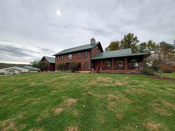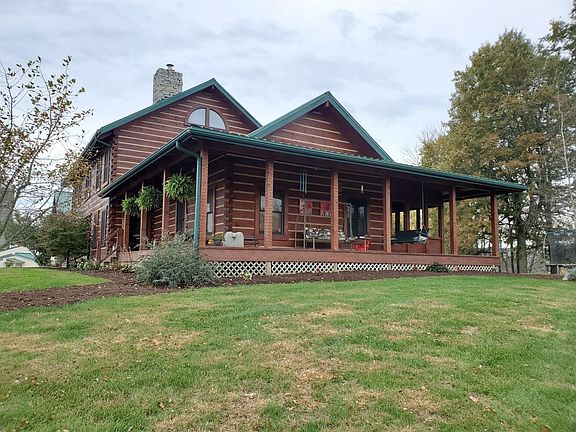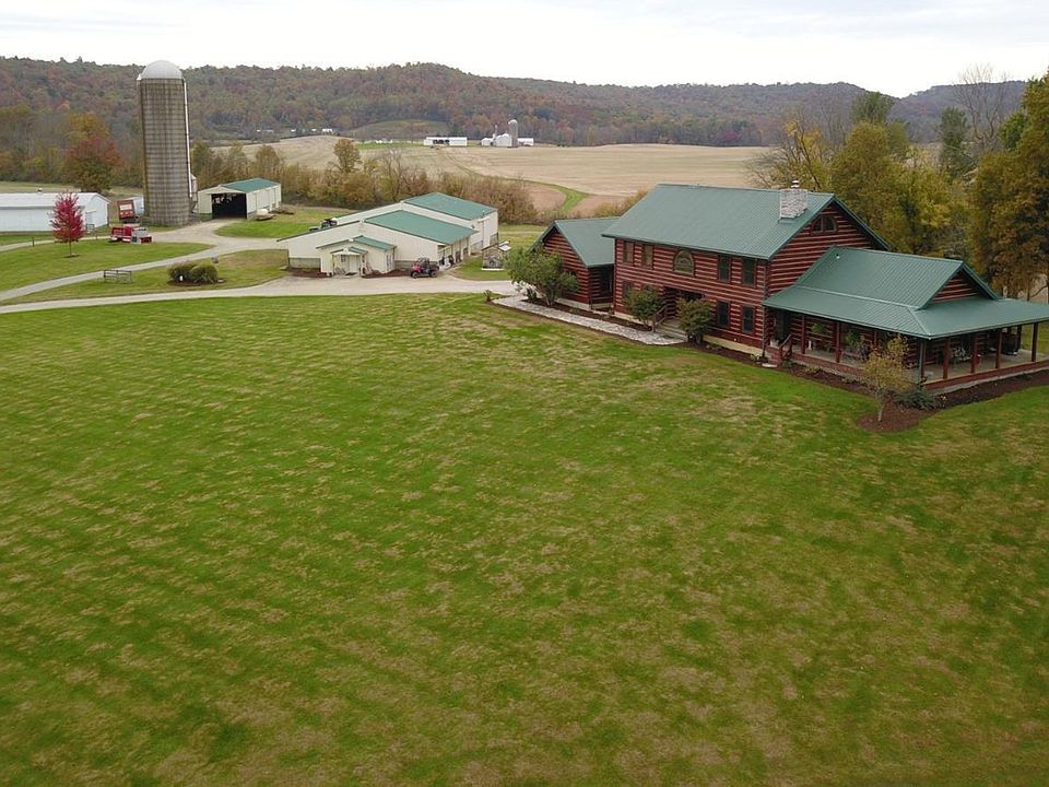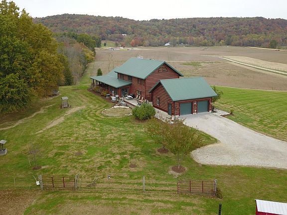 Beautiful Pike County Farm with level to gently rolling terrain in quiet valley setting with really nice views. High quality log veneer home in excellent condition with 17,000 Square foot of barns for equipment and livestock. 32 acres tillable, woods, pasture. Secluded back long lane.
