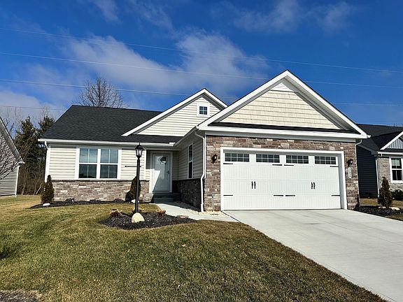Lovely low maintenance ranch home in Delaware's Highlands at Terra Alta. Open floor plan with full basement and covered rear porch. 3 bedrooms with generous closet space, 2 full baths with ceramic tile flooring. Kitchen has white cabinetry, quartz counters and includes stainless-steel appliances. Large island with eating ledge, large eating area and spacious great room with gas fireplace. LVP flooring throughout most of the home with carpet in all bedrooms. Views of wooded area from the covered rear deck. Enjoy the deer, hummingbirds and lots of wildlife throughout the year. Home is like new and ready for you to enjoy a low maintenance lifestyle that includes grass cutting and snow removal.