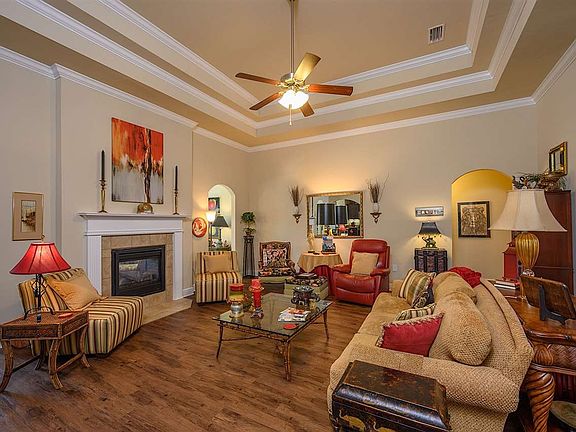 Unique 3 bed 2 bath home conveniently located in Gulf Shores! Features: double-sided gas log fireplace centered between arched doorways leading into sun-room/office. Granite counter tops on maple cabinets with arched pass-through from kitchen into dining room. Stainless appliances, gas range & water heater. Mohawk luxury vinyl plank flooring throughout living area, carpeted bedrooms. Master bath features a large shower, raised height toilet, and double lavatories. Upgrades: lighting fixtures, crown molding in main rooms, tray ceilings, kitchen under-counter lighting, granite counter-tops in kitchen & baths. Paver & cement surfaced patio with 2 sun sails. Landscape lighting & sprinkler system, Gold Fortified home, Hurricane screens for all windows and doors. This well maintained home is a must see and move in ready!