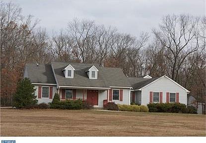 This country home sits all the way at the end of Tuckerton road where begins the dirt road leading to the historic Carranza Memorial. Located on over 7 Acres, this custom built contemporary is perfect for horses as a large portion has already been cleared. The unique floor plan is both beautiful and functional as the Master suite is situated on the right wing and the other 2 bedrooms on the left. The study is off the foyer as is the formal dining room center hall style. The great room looks out to the rear property and is open to the kitchen which has an island convenient for snacks or as a passthrough during the game. The full high basement is easily finished and there are 2 sheds, one of which is equipped with phone, electricity and prewired for low voltage lighting. There is a security system and irrigation too. There is a staircase leading to the unfinished attic with future expansion in mind.