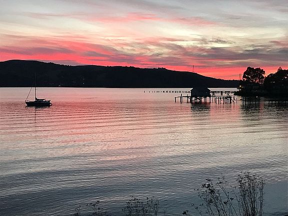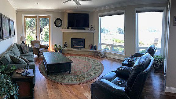 Custom waterfront home just steps away from beach out the back gate...views galore throughout all levels. Watch fireworks from your own backyard or master room balcony… sit back and observe sailboats, fishermen, beach activities, train…or just be hypnotized by waves. Just three blocks from downtown cafes, shopping and boutiques or a quick hop to the ferry to SF. Light filled throughout large open windows and skylights with curved interior balcony. Sitting/meditation room off master with full Bayfront view of the downtown pier and rolling mountains. Solar system and fully automated home, alarm, and surveillance cameras. Professionally landscaped, including a backyard open life room with automated wind and sun screening, fruit trees and a garden to round out the package!