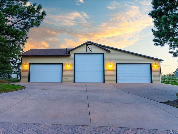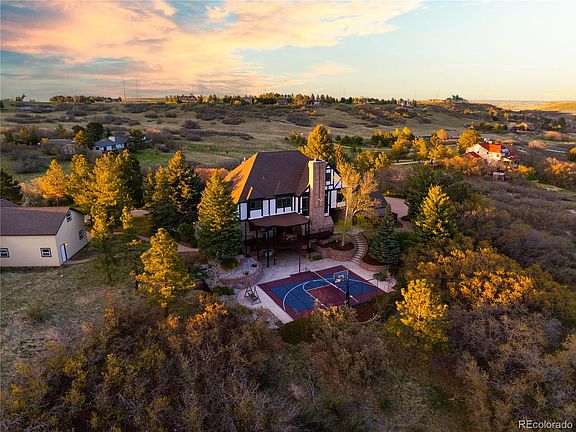 Welcome to 380 Juan Way, a one of a kind estate nestled on almost 6 acres in Castle Rock. This property offers the freedom of no HOA, allowing you to relish in your very own piece of Colorado paradise. Offering complete privacy while still being close to all of the Denver Metro amenities, being just 5 minutes to I25. The opportunities are endless from having horses on property, livestock, additional buildings, gardens or all of the above. The nearly 6,200 sf of living space boasts 4 bedrooms and 3.5 bathrooms. Upon entry, you'll be greeted by a sense of luxury and comfort. High ceilings complete the living space with a towering brick wood-burning fireplace. The kitchen is ideal for hosting an abundance of loved ones. The kitchen features 2 Sub-Zero Refrigerators, 2 Bosch Dishwashers, Double Wolf Oven, Dacor Gas Range and a Kegerator. Proceed to the outdoor oasis with outdoor deck space and your full sports court. Perched near the top of a hill this home offers views of Colorado from all directions. The upstairs showcases two oversized bedrooms, loft space and a full bath. The primary suite is an oversized retreat with its own wood-burning fireplace, balcony, jacuzzi tub, steam shower and walk-in closet. The walkout basement is complete with a family room, rec room, full bedroom and bath. Attached is an oversized 3-car garage with individual stalls, and storage cabinets. The highlight is the 7-car, 3-stall RV garage that includes a 220-volt RV plug and an RV dump just outside. The RV garage measures 18' x 60' deep with a 14' x 14' 2-inch insulated door. Additionally, there are two side garages, each measuring 26' x 26' with 16' wide by 9' high doors. The RV and left garages are finished with blown insulation, drywall, and heating. The vast acreage offers endless possibilities for outdoor enjoyment of the picturesque surroundings. Don't miss the chance to own this property, where luxury, space, convenience, and freedom come together for a remarkable living experience.