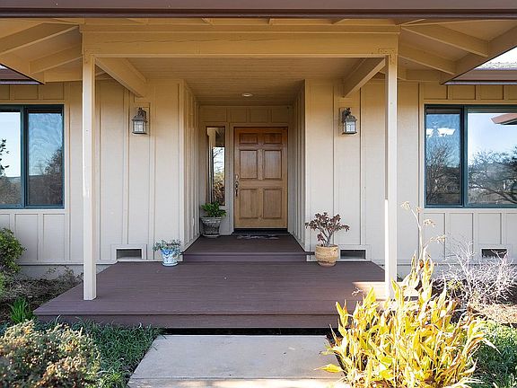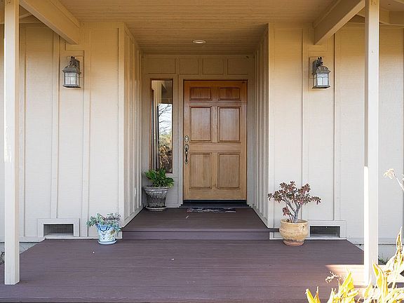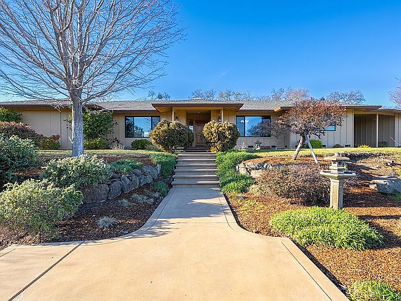 This beautiful home in Butte Valley is nestled on a hillside away from the hustle and bustle of busy streets. It is surrounded on the East and West by the Sierra Foothills, lushly green in the winter and spring. These 13 1/3rd acres are a mix of rolling hills and flats. Views, views, views inside and out. Start your path to the entrance greeted by roses, left and right of the walkway. Cross the brown colored wooden, arched foot bridge that spans dry rock creek leading to the stairway. Walk onto natural slate tiles with a custom fossil pattern upon entry. The home floor plan is open from the front to back. Interior wood/metal clad double pane windows throughout each room, sky lights allowing beams of sunlight, yet plenty of privacy with Hunter Douglas Blinds in the living and family rooms.