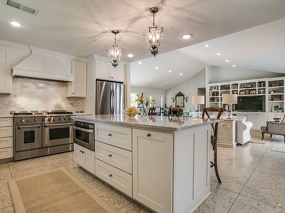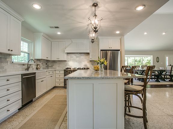 Stunning ranch style home in Tanglewood schools. Could be a 6 bedroom and has 5 full baths. Vaulted ceilings with welcoming open feel. The home has two living areas plus an office, formal dining and breakfast nook located off kitchen.The kitchen is fresh and bright, boasts soft close drawers, gas range and microwave drawer. Master bedroom suite has access to back patio and pool area as well as a large custom closet system. Recently added on guest quarters with its own separate entrance is appointed with built in wet bar and wine fridge. Backyard oasis with large open patio and swimming pool.