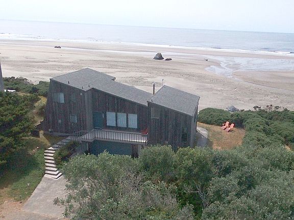 Jaw-dropping location and views from this oceanfront home. Expansive, wide walking beach, with monolithic rock in sight. Nestled at end of secluded drive, home sits on .42 acre. Relax on the back deck, hear crashing waves, enjoy the moving landscape, gulls and wonderful scent of the cool surf. Four bedrooms, 3 baths. Master bedroom and bath on main level. Interior photos do not do justice to this magnificent oceanfront home, must see!