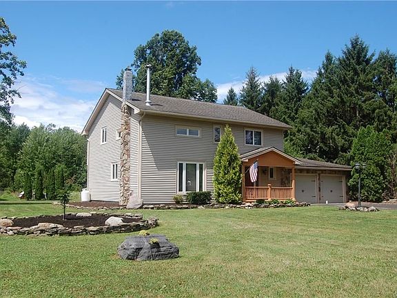Country living at it's best! 2 Story Colonial plus room to roam on over 7 acres! Natural finish throughout compliments a perfect setting. Walk in the open foyer with slate floors, then into a 2 story great room with a new woodburning stove (heats extremely well), formal dining room or added family room space if desired! Kitchen with granite counters, cherry cabinets with dining area leading to sliding glass doors & deck, all new appliances stay! 2 full baths (one up and one down); spacious bedrooms, 6 panel doors, great natural trim and oak staircase; lots of storage and full basement with 9 ft. ceilings; 2.5 car garage; 200 amp service; also updated with hot water tank (2017); electrical heating system (2018) and woodburning stove (2019); electric bills are only $100 a month - including heating!