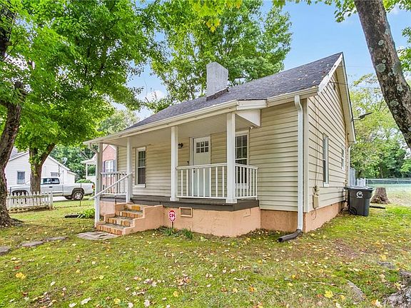 BACK ON MARKET - BUYER FINANCING FELL THROUGH. Offering charm & affordability, this move-in ready cottage is now available & a great opportunity for 1st time buyers or investors. Priced below appraised value. Located in Pomona Village, one of Greensboro's historic mill neighborhoods, this cozy home offers a covered front porch, a picket fence, & high ceilings that give it a spacious feeling. LVP flooring throughout the entire space, w/ a living area open to the kitchen through a wide opening. Kitchen has newer cabinets & sealed concrete countertops, offering an industrial & modern feel. Living room & bedrooms have ceiling fans. Bathroom has a wide vanity, & laundry room has space for stackable washer/dryer. Updates include heat pump (2024), roof & gutters w/ leaf guards (2021), insulation in floors & attic (2021), many replacement windows, 2" blinds, & a fully fenced yard. Backyard offers deck, patio & lots of yard space for outdoor enjoyment. Close to Wendover, Holden Rd & I-40.