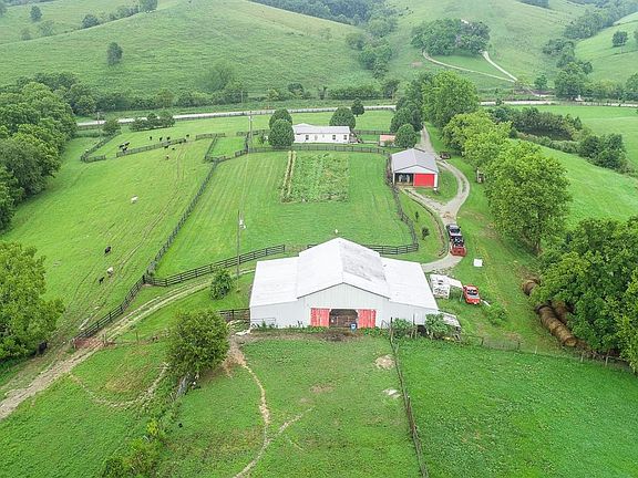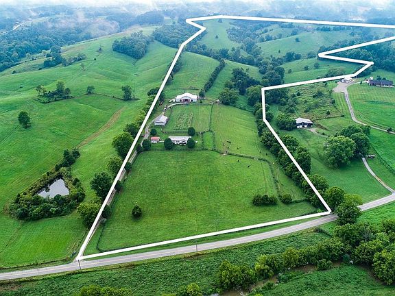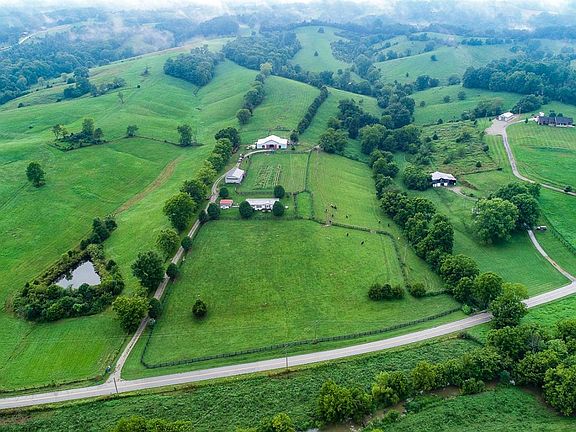 Secluded 56.1 Acre Cattle/Horse Farm within 6 miles of I-75 at Ex144, Between Lexington & Cincinnati. This Farm has exceptional views and plenty of road frontage! 1989 Double Wide that will require some repairs but is occupied now. Very nice 1800's peg barn that is covered with metal and sheds off each side. Set up with (4) horse stalls, hay loft, water & electric. There are (6) paddocks, Pole Barn for Equipment Storage, Run-in Shed, Deer Hut in back of farm, 2 ponds, creek, a spring that never runs dry. There is some Timber in valleys (Walnut/Oak). The farm is mowed and clean. Ready for your horses, cows or for hunting!!!