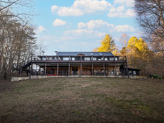 Discover an exceptional blend of comfort, space, and natural beauty in this 5-bedroom, 4.5-bath home set on 8.02 private acres, just 8 miles from downtown Blue Ridge, with an additional adjoining 7.93 acres available for purchase, offering the opportunity to own nearly 16 acres total. Enjoy peaceful rural living while remaining close to dining, shopping, and the charm of this mountain town. The interior features an impressive open-concept layout ideal for daily living and entertaining. The living room includes a cozy fireplace and flows into the open kitchen with a large island. Adjacent to the kitchen, the dining area offers expansive windows overlooking the forest and abundant natural light. Step outside to a spacious composite deck with views of a tranquil pond. This space is perfect for gatherings, grilling, or quiet relaxation. The main level includes three bedrooms, highlighted by a primary suite with a beautifully renovated modern rustic bathroom. Upstairs, two additional bedrooms are paired with well-appointed bathrooms for comfort and privacy. The basement level adds remarkable flexibility. It includes a reading room, a large home office, and a versatile bonus room suitable for a gym, photo studio, or additional living space. A generous entertainment area features a cozy iron stove, creating the perfect setting for hosting. A fully equipped laundry room provides everyday convenience. Outdoor living is enhanced by a covered terrace, offering a comfortable space to enjoy the mountain air year-round. The property also includes a two-car garage and a full concrete driveway extending to the road. Additional upgrades include an enhanced fireplace and a new roof for peace of mind. A scenic creek runs along the property line, and the acreage provides ample space for recreation, expansion, and privacy. Offered below appraised value, this home presents a rare opportunity to own a spacious and well-appointed mountain retreat in an exceptional natural setting.