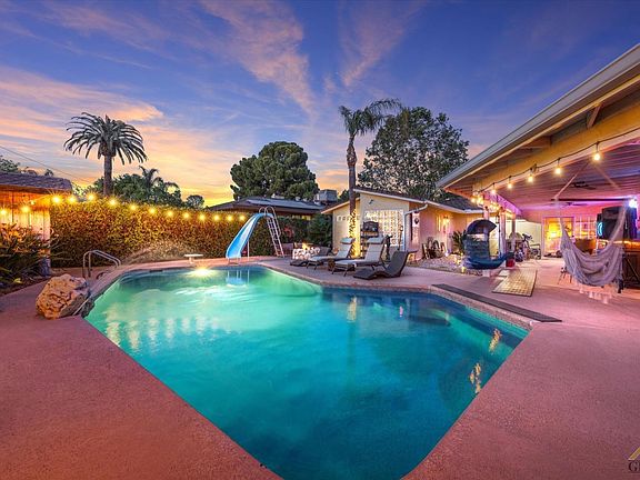 Do you love to entertain? Then we have the perfect house for you! Starting with the spacious living room and dining areas with upgraded tile flooring and fireplace. Cooks will fall in love with the kitchen: stainless steel appliances, granite countertops, bar counter, center island and a breakfast area with a built-in corner dinette. The stove has a griddle and a built in air fryer! Extend your entertaining outdoors with this resort style backyard. A wrap-around covered patio with a built in BBQ overlooks the Pebble Tec pool. The gorgeous backyard also has a fire pit, an extra storage shed and access to the garage bathroom. This incredible home is located in the highly desired neighborhood of Bakersfield Country Club. It is 2,013 square feet, 3 bedrooms, and 2.75 bathrooms. The master suite includes a gigantic shower tub, dual vanity, walk-in closet and access to the pool. This home has been immaculately cared for and updated with a tankless water heater in 2021.