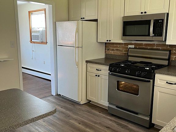 Single family home with a yard both in the front and the back and a 2 car driveway & shed. There are 3 bedrooms and 1 bath and 3/4ths of the basement is finished. The kitchen was updated with cabinets and manufactured flooring and there's a deep recessed storage built-in in the kitchen, as well. The view from the kitchen sink overlooks a grassy area with added landscaping. A bow window was installed in the living room and the bedroom closest to the kitchen both of which bring in more light than the traditional double flat design. If you only need 2 bedrooms, that 3rd bedroom makes for a convenient dining area. The walls have been painted and the floors have been refinished with the installation of new matching 1/4 round molding, as well.