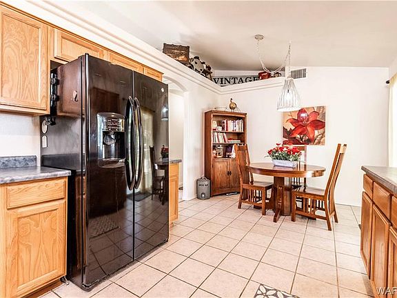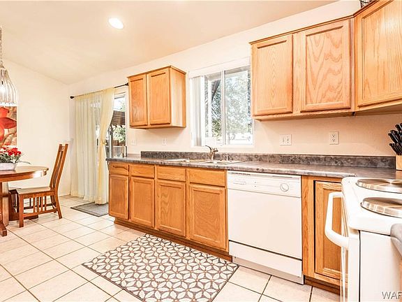 Open House Saturday September 22, 1130-130 stop by! You will love this home! Kitchen features lots of counter space & cabinets, lazy Susan, ceramic tile, new urban style kitchen light in dining nook, arcadia door, vaulted ceilings, pot shelves which extend to the living room. The carpeted living room and hall have new LED lights that match the ceiling fan. All 3 bedrooms are carpeted and have ceiling fans. One of the guest bedrooms has a walk in closet. Both bathrooms have two tone paint. The Master Suite has a walk in closet and a walk in shower in the Master Bath. All the bedrooms are good sized with the smallest at 10' X 10'.The Garage is 404 SQ.FT. ample room to park 2 vehicles & Workbench. The garage door has a remote, keyless entry & wireless capabilities. The extra quiet triple insulated steel sandwich double door has an R Value of 6.58. This home is situated on a large 75' Wide X 112' Deep (8400 SQ.FT.) lot. The front yard has low maintenance rock. The west side has 10' X 20" Pergola, shaded patio, & Mountain Views. Throughout the back yard there are two shade trees, century plant, rose bush & 7 Oleandor bushes. The fully fenced back yard has 10" RV Gates, RV parking & room for a wrap around patio or storage sheds. No HOA, locking mail boxes, camera's & motion lights. This home is situated just minutes from Route 66, I-40, shopping, college, medical, Kingman airport and is on the city bus line. Call today to view your next home!