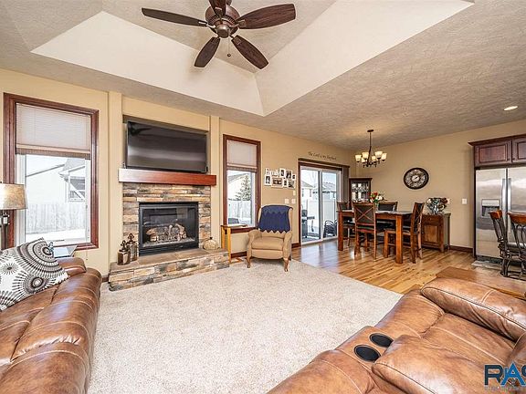 Meticulously cared for one owner home in southeast Sioux Falls. This 4 bedroom, 3 bath ranch is waiting for you. Walk in and the beautiful hardwood floors will catch your eye. Enjoy the open concept living space. The living room boasts a beautiful gas fireplace and tray ceilings. The kitchen has stainless steel appliances, large island, and walk in pantry. The dining room leads you to the covered deck. There is main floor laundry with a utility sink and lockers in your mudroom just off the fully finished 3 stall garage with utility sink. The main floor offers 3 bedrooms including a large master with tray ceiling, WIC and master bath with double sinks. The lower level welcomes you will a huge family room, a 4th bedroom and huge bathroom. It doesn't stop there! There is a multi-purpose room perfect for an exercise room, play room or craft room. The perfect workshop area awaits the handy person in your family.