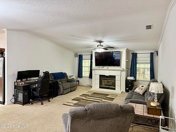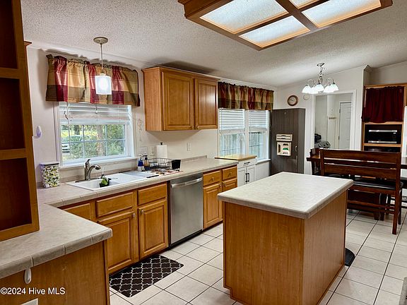If you are looking for privacy but still be close to everything this 3 Bedroom / 2 Bathroom split floor plan home is for you! Attached oversized 1-car garage with room for workshop or storage. Well-sized partially covered composite deck out front (2023) leads to garage and an enclosed porch and welcomes you into a roomy LR / DR combo w/ cathedral ceiling and gas log fireplace. Living area opens to a large well-appointed kitchen w/ vaulted ceiling, SS appliances, plenty of counter space & wood cabinetry, tile floor, double sink w/ garbage disposal & center island with lighting above. Storage galore in this kitchen including a nice pantry near by off of the laundry room. Spacious dinette as well. Primary bedroom & bath w/ vaulted ceilings, double vanities, soaking tub, separate walk-in shower, & walk-in closet. French door leads to an enclosed porch (not included in heated square footage) w/ cedar walls & ceiling and 2 sliding doors to front deck and smaller composite deck out back (2021). Both decks have PVC railings. Hall bath w/ tile floor & tub/shower combo. Other features include: 200 Amp service, LED lights, crown moulding, vinyl tilt-in easy to clean windows, new roof (2021), new gutters (2023), SS appliances replaced within last 3 years, & smoke detectors and bathroom fans replaced within last 2 years. Close to all amenities: supermarkets, restaurants, shopping, medical professionals / hospital, etc. Approximately 6 miles to Historic Downtown New Bern Waterfront.