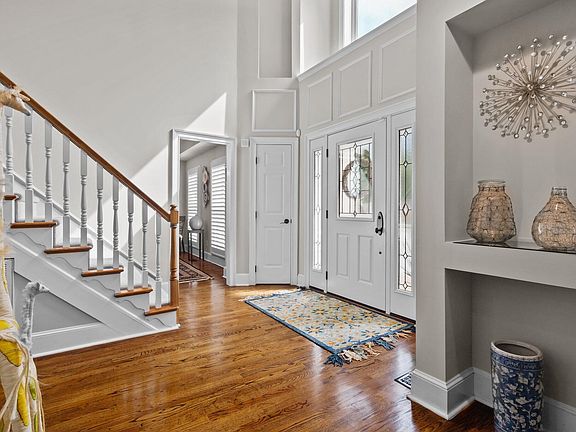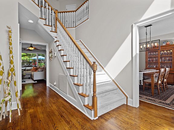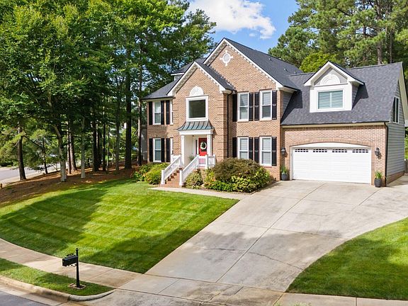 Welcome home to this meticulously maintained, updated home in Evans Mill. Fabulous location-convenient to 540/440, shopping, Lake Lynn, parks & more. The home boasts formals, plus a den/office, family room with wall of windows including picture window & modern kitchen on the main level. Upstairs you will find a huge owners' suite with vaulted ceiling, a spa-like bath with oversized walk in shower, separate commode room & dual vanity w/ quartz counters & large walk in closet plus 3 other bedrooms & huge bonus room -all with hardwoods. Outside is your own backyard retreat, with screened porch & huge deck, plus the hot tub conveys, all overlooking a lushly landscaped, fenced yard. Kitchen features premium appliances-Bosch double ovens/gas cooktop/dishwasher. Large kitchen island/bar with waterfall countertop, tile backsplash, under cab lighting. Family room with see through fireplace opens to study area as well as kitchen/breakfast rooms. Bar area in fam room. Silhouettes & Plantation shutters adorn the windows, most of which have been replaced. Tons of natural light throughout. Unfinished walk-up attic. Kitchen fridge/washer/dryer convey. Roof 2024, hwh 2023, hvac 2019/2020, irrigation 2019 & so much more!