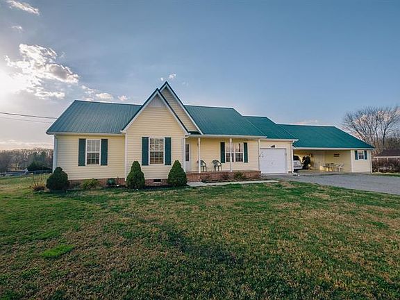 Three bedroom 2 bath home w heated and cooled sunroom, attached 2 car carport, 1 car garage, workshop w attic space above, newer metal roof, replacement windows, new hot water heater, newer hvac unit, open floor plan, vaulted ceiling, and newer laminate flooring, all sitting on 1.198 acres located close to Tims Ford Lake.
