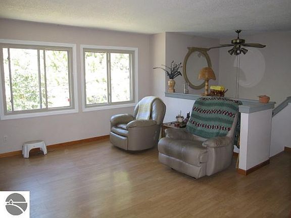 Recently remodeled with Newer Windows, Roof, Furnace and carpeting. There is a 12 x 16 deck off of the kitchen. The lower level has a 15 x 18 family room, bath and 11 x 19 laundry and storage room. Attached 24 x 32 garage with carport. This property sets on 1.3 acres and is fenced in. Within walking and biking distance to thousands of acres of state land. TimberRidge Campground and the Vasa Trail. Nice property!