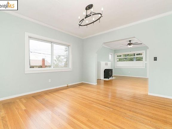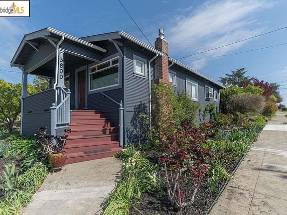 Charming Upper Laurel District Bungalow sits on a sunny corner lot. The home has great views of the Bay, the SF Skyline, the bridges and the Oakland Hills. The garden is brimming with color and includes roses, bulbs and fruit trees with a private patio and storage sheds. This home boasts a lovely floor plan and includes hardwood floors, a fireplace insert, spacious carpeted Master Bedroom and second bedroom. The cheerful kitchen has a gas stove, freshly painted cabinets and stackable washer/dryer combination. It sits just 3 blocks from an AC Transit Express Bus that goes to the Salesforce Transit Center in downtown SF, or there is casual carpooling and bus to Bart. Enjoy the burgeoning Laurel District restaurants and shopping scene in this wonderful neighborhood of Oakland. This home is a Gem!