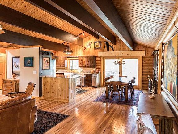 Rare pristine log cabin located in NW Bismarck with a beautiful park like setting. This home is one of a kind and STUNNING! Sprawling ranch style home with 2048 Sq feet on the main level. 5 bedrooms & 3 bathrooms in this home! You will love the custom high end finishes. Gourmet kitchen with beautiful appliances and center island. Spacious master bedroom with walk in closet & master bath with custom tile shower. You will appreciate the convenience of main floor laundry. Stunning stair case and endless windows! The walk out lower level has huge family room, additional bedrooms and shower with custom tile. Stunning lot has 21,585 sq. ft. of trees, landscape & pond! Outside living space at its finest! Wrap around deck & patio space. Oversized garage with lots of extra space. This home is truly one of a kind in one of NW Bismarck's premier locations!