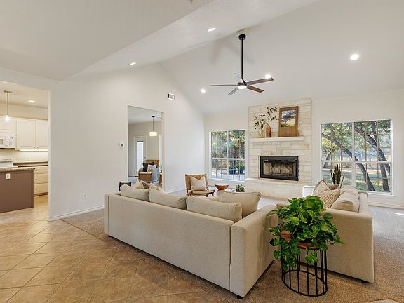 Location-location-location: less than 3 miles from downtown Marble Falls but it feels like you're in the country. This three-bedroom two-bath open floorplan home is well maintained with lots of windows and is a single owner. Huge secondary living space off of a guest bedroom offers lots of potential. Tons of parking with a U-shaped drive and a 2-car side entry garage. Large live oaks surround the home, with a fenced backyard with a shop/storage. The laundry room is centrally located with lots of natural light. Large attic storage over the garage with stairs for access. New shingles in October of 2024, new carpet, fresh paint, updated fixtures, and it is move-in ready.