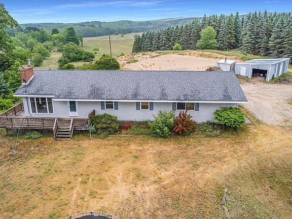 Beautiful home on approximately 20 rolling acres with a mix of hardwood and pine and some openness. This is located just a few miles out of Mesick and just down the road from the main ORV and Snowmobile Trails and State Land. The home offers 4 main-floor bedrooms, 2-full baths, and a large foyer and storage area. The kitchen, living, and dining areas are all very open and spacious with the living area having a fireplace, giving it that comfy cozy feeling. Just off the dining area is a large deck where you can sit and relax enjoying the breathtaking views of the rolling 20 acres. There is a full basement that has a kitchenette, pellet stove, and the other full bathroom is located here. This space would make a great area for guests, an in-law suite, or if you need extra space for a big family. There is a pole building that fits one car and offers extra storage. The home has 4 working heat sources, a wood boiler, propane, a pellet stove and electric baseboard. The Seller primarily heated with the wood boiler and is leaving a good amount of wood for the next buyer. Immediate possession is available, showing appointments are being taken immediately. All offers are due Monday, June 19th at 5:00 p.m.