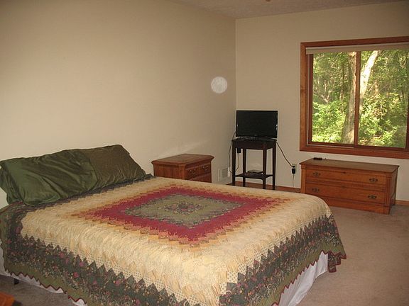 9.9 acre wooded lot, octagon shaped ranch, detached poll barn. Granite counters, new water purification system including hydrogen peroxide injection, tile/carpet flooring throughout. Heated attached garage. On waterfront.