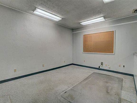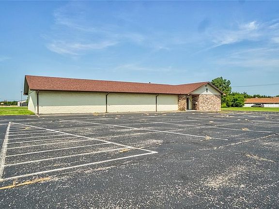 This building has been used as an office building for the Pottawatomie-Lincoln Baptist Association for years. It is zoned residential. Buyers to satisfy themselves with verifying zoning possibilities. It has a reception area, 2 office areas near the front, one with a half bath. There are mens and womens restrooms in the hallway. There are also 3 other large rooms for offices. The largest room has a kitchenette in it and a large storage area in the back. This could be revamped into a home, possibly a duplex or used for a church. There is a large parking lot in the front.