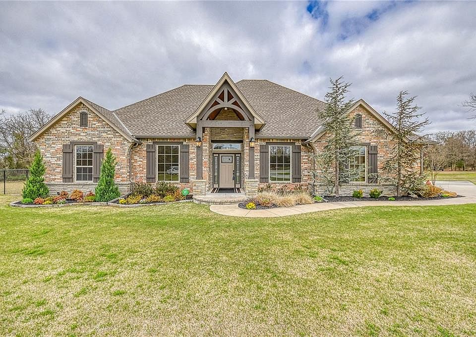 The home search ends with this hidden gem nestled onto a quiet cul-de-sac in Huntington. You notice its charm, 4 garage bays and full acre lot when you pull up to the curb. Meticulous craftsmanship is noticeable when you walk in the front door and gorgeous wood tile floors greet you. Incredible office space compliments the versatile floor plan. Two dining areas allow for easy entertaining of guests with formal dining & breakfast nook. Endless countertop and cabinet space galore create ample storage for kitchen items. The stainless steel appliances, arches and brick facade create the highly desired farmhouse feel. Master suite creates an oasis with tray ceiling, french door entry into the bathroom that has dual vanities and a jacuzzi tub. Step outside onto extended back patio with firepit & instantly escape city life. Includes Full acre of fenced, lush lawn, storm shelter, safe room, storage shed, security system & wired for whole house generator with plenty of room for a pool!