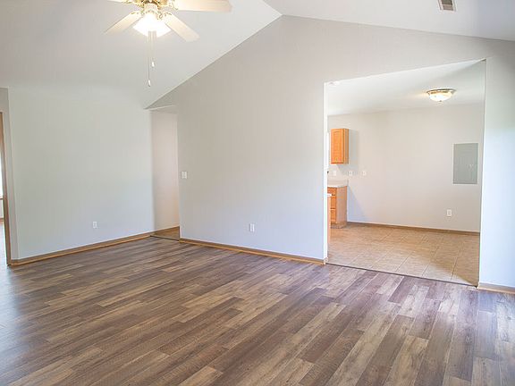 Fantastic slab home for rent in the Vanderveen subdivision! Spacious living room with vaulted ceiling, kitchen with tile floors and upgraded appliances, wood look flooring, fully-fenced backyard, walk-in shower in the master bath, ample above-garage storage. Lease includes access to the community pool and park area! Call for more information and schedule a showing today! $35 application fee per adult, schedule a showing before applying online. Directions: Traveling North on Rangeline St, turn left on Rain Forest Pkwy, left onto Panther Dr, home is on the left.