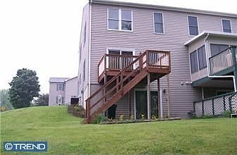 Welcome to one of the best lots in Penns Grant! Not only is the lot large with both back and side yards, but backs directly to the Exeter Township Park and next door to Exeter township schools. This spacious end-unit townhome is ready for a new owner! Great open floor plan! Large, bright eat-in kitchen with new gas range, vinyl flooring and pantry. Large living room/dining room combination with slider that leads outside to the large deck with stairs. Huge first floor hall closet. Upstairs you will find the large master bedroom with walk-in closet with full bath and two additional nice size bedrooms. New carpeting and paint throughout! The full walk-out basement houses the laundry facilities. Close to highways and shopping. This home is a must see!