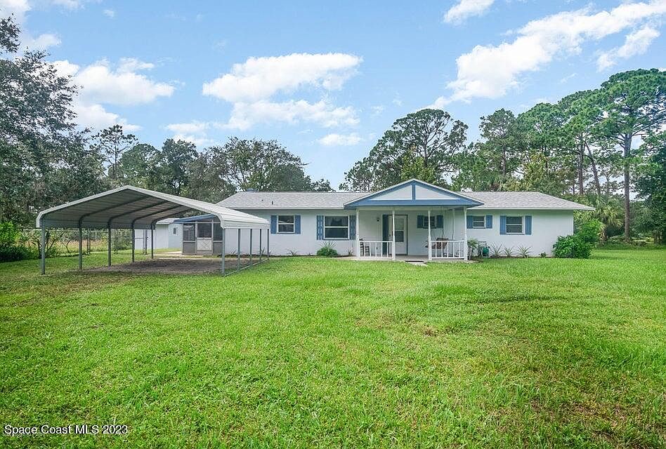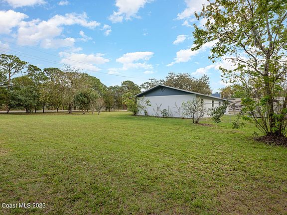 A fully remodeled house in the desirable Canaveral Groves neighborhood. This one acre lot has lovely mature fruit trees and a concrete block home with three bedrooms and two bathrooms. a large living area with a lovely wood burning fireplace. This house features new wood laminate flooring, new carpet in the bedrooms, new bathrooms, new HVAC, new ducts, new soffits, and a newer roof. It has also recently undergone inside and exterior painting. On the front porch, unwind while swinging on the porch. The property features a chain link fence for your pets and two sheds. While living the country life, you will have quick access to major highways, shopping, and dining.