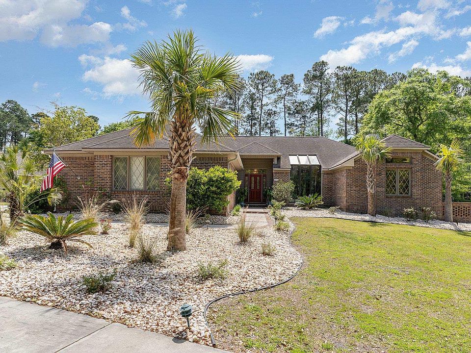This home is a true gem, boasting a blend of remarkable features that make it a standout. From its thoughtfully designed floor plan to its stunning outdoor oasis, every detail is sure to impress. Nestled alongside the picturesque backdrop River Hills' golf course's 8th green, the backyard is a paradise unto itself. Upon stepping through the front door, you're greeted by a captivating vista of the expansive outdoor living space beyond the living room. Large sliding glass doors seamlessly connect the indoor and outdoor realms, revealing a backyard oasis complete with a spacious enclosed heated inground pool, hot tub, and a sprawling living area that's partially covered. Inside, the living room exudes charm with its custom tile work, exquisite lighting, and a breathtaking view of the pool area. Sliding glass doors frame stunning sunsets, adding to the ambiance. Adjacent to the living room is a versatile den/office/study area, situated opposite a delightful atrium. The home's layout is ideal for privacy, with the primary bedroom, ensuite, laundry room, and large side-load garage occupying one side. The primary bedroom is generously sized and opens directly onto the pool area. The ensuite boasts a sizable walk-in closet with ample storage, a spa-like walk-in shower with multiple showerheads, dual sinks, and a separate water closet. On the opposite side of the home, two spacious guest bedrooms and a full bathroom offer comfort and convenience. The large kitchen is a chef's delight, featuring a skylight, under-cabinet lighting, 2 sinks with garbage disposals, trash compactor, electric cook top, wall oven, built in microwave, unique cabinetry, and quartz countertops. A pass-through to the pool area bar enhances entertaining possibilities. The formal dining room, with its sliding glass doors to the pool area and convenient half-bath, is perfect for hosting gatherings. The family room beckons with a gas fireplace, custom cabinetry, vaulted ceilings, wet bar and abundant natural light. Access to the outdoors is effortless, thanks to numerous rear doors and windows—all screened-in to keep out pesky insects. This home is bathed in natural light, thanks to skylights, ample windows, and sliding glass doors throughout. Nearly every room offers direct access to the pool area, enhancing the indoor-outdoor lifestyle. Additional features include dual AC units, dual water heaters, a pool heater, and a plug-in gas generator for peace of mind during power outages. Custom tile flooring, an invisible fence in the backyard, and meticulously landscaped grounds further elevate the appeal of this exceptional property. All measurements are approximate and should be verified by buyer.
