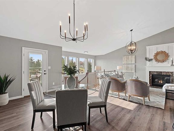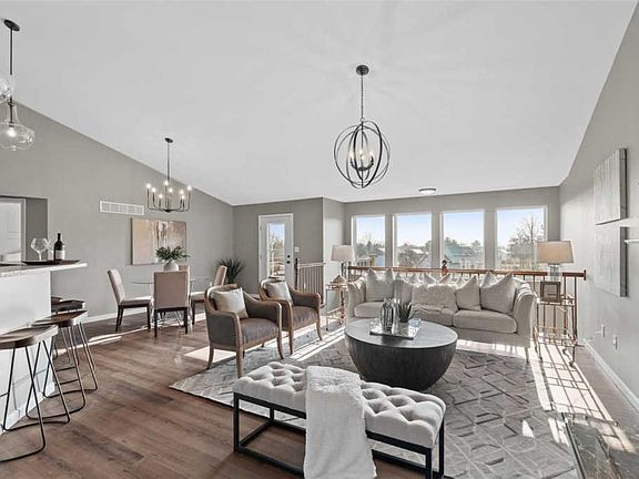 You will be impressed by the gorgeous finishes in this stunning atrium ranch, from soaring vaulted ceilings to NEW (2020) wide-plank water-resistant laminate floors. A wall of windows brings in an abundance of natural light to the beautiful family room with a gas fireplace w/custom trim & the kitchen w/NEW (2020) granite counters, 42" cabinets w/undercabinet lighting, tile backsplash, breakfast bar, pantry & NEW (2020) SS appliances, including a 5-burner gas stove. Elegant NEW (2020) chandeliers in many rooms. Board & batten wall trim in the dining room & owner's suite w/bay window, walk-in closet & private bath w/seated shower & soaking tub. Tucked in their own wing are 2 family bedrooms, each w/walk-in closets, & a full bath. Spacious walk-out lower level w/roughed-in bath. Composite deck overlooking common ground. 3-car garage. Built in 2017 w/builder's warranty remaining. Peaceful, secluded neighborhood surrounded by nature. You may forget the world exists! See this beauty today!