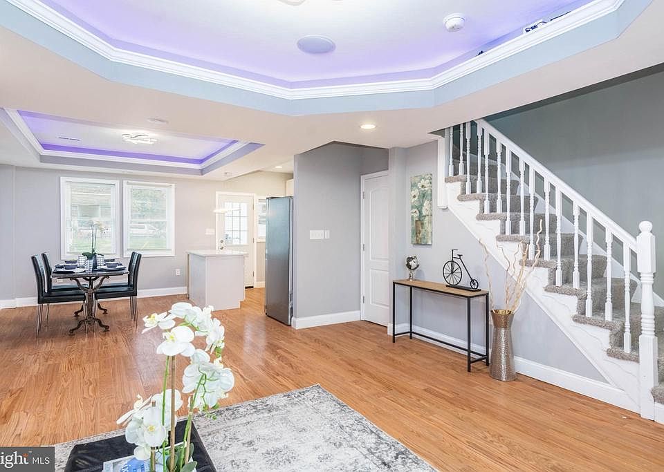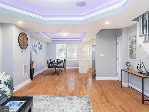 SPECTACULAR END OF GROUP RENOVATION FEATURING AN OPEN FLOOR PLAN AND 3 FINISHED LEVELS! Features include hardwood floors throughout the main level, spacious living room with tray ceilings with rope lighting, separate dining area, designer kitchen with granite counters, ss appliances, and tile backsplash, upper level with 3 bedrooms and 1 full bath, finished basement with a family room, 4th bedroom, and 2nd full bath. Pack your bags and move right in!