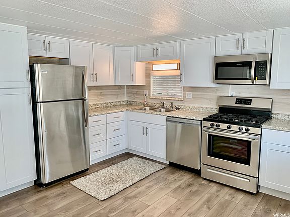 Completely remodeled home in the highly desirable Monte Vista Community. This home has been meticulously remodeled and looks better that a brand new home inside. All new carpet and high-end laminate flooring. Brand new white kitchen cabinets and new countertops. All brand-new stainless-steel appliances (Refrigerator, Microwave, Dishwasher, and Gas Range all included). New double pane windows. 2 car side by side carport. Full auto sprinklers. Huge storage shed. Washer and Dryer included too! Lot rent includes water, sewer, trash, and basic cable!
