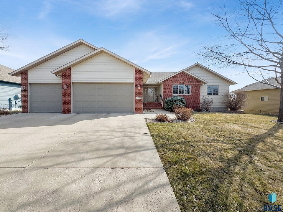 Wonderful Ranch style home in Southeast Sioux Falls with 5 bedrooms, 3 bathrooms & 3-stall garage. Kitchen features stainless steel appliances, wood flooring & an island w/seating plus storage. Open to the kitchen is a spacious dining room w/wood flooring & a door to the deck. Main level also includes a large living room w/vaulted ceiling, laundry/mudroom w/washer & dryer included, 2 great sized bedrooms, a full bathroom & a spacious primary suite. Which includes a large bathroom w/whirlpool tub, 2 sinks, tile floors, walk-in shower & huge WIC. Lower level family room is spacious w/gas fireplace & walkout door to backyard. There are 2 more bedrooms in the lower level & a large full bath. Property features a 3-stall garage w/drain & water hookups, underground sprinklers, landscaping & mature neighborhood.
