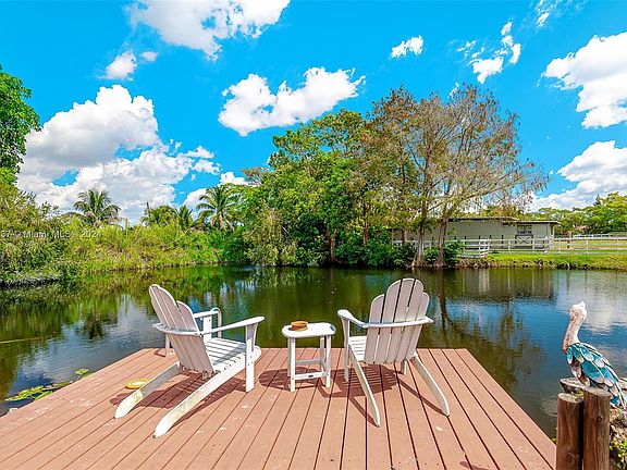 5/4 Tropical Paradise situated on 2.5 acres with lake in the Country Club Ranches Community, Miramar. Gated secluded pool home offers perfect living space & combines city & country lifestyles.Perfect for Horse Lovers or family looking for a lot of open space. Features 5 bedrooms & 4 bathrooms + den. 2 primary suites on 1st floor,updated eat in kitchen,granite counter top & stainless-steel appliances overlooking beautiful open pool area, gazebo & bar great for gathering & entertaining,dining room, living room with a Chicago brick chimney,spacious Florida Room + full cabana bathroom,impact windows & door, large covered porch,over sized carport,long pavers driveway,fully fenced,professional landscaping,private well w/new water filtration system,generator,2 horse stalls stable & much more!
