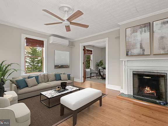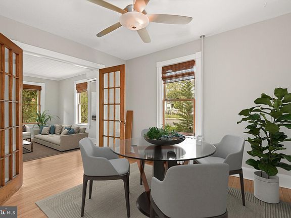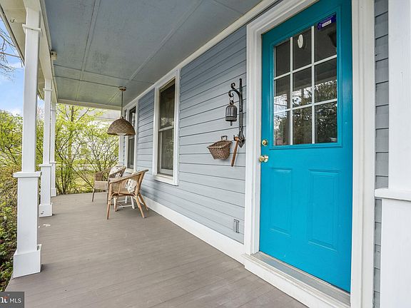 Step into the charm of yesteryear with this captivating 1909 Victorian-style home. Nestled on a picturesque corner lot spanning nearly half an acre adorned with lush gardens and fruit trees, yet conveniently located mere minutes from Washington DC. This meticulously maintained residence boasts timeless details including a covered front porch, crown molding, detailed ceiling designs, and hardwood flooring throughout, complemented by modern updates. The inviting living room, painted in a soft neutral hue, features a cozy wood-burning fireplace and seamlessly flows into the dining room through elegant French doors. The kitchen showcases white cabinetry, a mosaic-tiled backsplash, and recently replaced stainless steel appliances, while a spacious main level flex space offers versatility as a third bedroom, enhanced by a vaulted ceiling and adjacent half bath. A laundry room and mud room combination add convenience and functionality. Upstairs, the primary bedroom boasts a cedar closet and additional closet space, accompanied by a second bedroom and a full bath with updated fixtures. A screened porch with a cathedral ceiling provides the perfect retreat for enjoying the serene surroundings. Outside, the fenced property offers decking, mature landscaping, garden beds, and an array of fruit trees including apple, pear, cherry, and persimmon, while a storage shed with electric adds convenience. With a convenient driveway for parking, this enchanting home is a rare find blending historic charm with modern comforts. Property Updates: Water heater 2016, Ac and porch 2020, Updated front porch 2019, Windows previously updated, Boiler 2020, Stove and dishwasher 2022, Driveway 2015, and Dog pen.