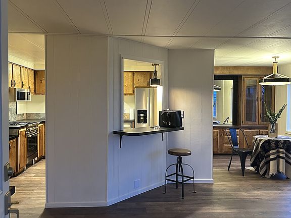 1980 double wide manufactured home in a park. Completely remodeled. New stainless steel kitchen appliances . New flooring, lighting and paint throughout. 2nd bath has new walk-in shower. New toilets/sinks in both. New HVAC system for year round comfort. Primary bedroom is attached to private bath with walk-in shower and soaking tub. All interior plumbing fixtures have been updated with stainless brass. New Italian stainless steel dual range w/ convection oven. Kitchen has a built-in space that can be used as a coffee or cocktail bar. New kitchen countertops and sink. Thoughtful details include built-in dining room buffet with extra storage and a pass through eating counter. Many other updates and finishing touches. Low maintenance yard. Reinforced tool shed. Really must see to appreciate! Buyer must be 55+ and approved by park manager. Ideal Trailer Village. Space rent is $410.00 per month. Includes water, sewer , garbage. Sale will include free standing refrigerator, range, built in dishwasher and built-in microwave. New exterior paint and hot water heater as of June. Seller is related to listing agent.