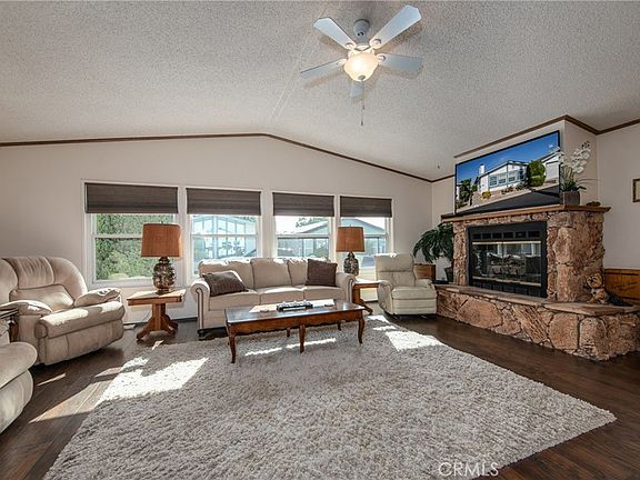 Welcome Home to this beautiful single story Banning Estates Home!! Banning Estates is a 55+ community where you own your own land. This is a manufactured home on a permanent foundation with a certified 433 A. The park has many amenities including a pool, spa, clubhouse, library and much more ! As you walk into the family room you will feel right at home with upgraded flooring and a gas fireplace for those chilly nights. The kitchen is nice and bright with lots of cabinets and counter space. There is a formal dining area with a built in hutch. The bedrooms are large and the master has a large walk in closet and a nice size master bathroom. This home also has a large sunroom off of the dining room perfect for entertaining or just enjoying the views of your nice private backyard complete with fruit trees and mature landscaping... Come and take a look you are going to love it !!